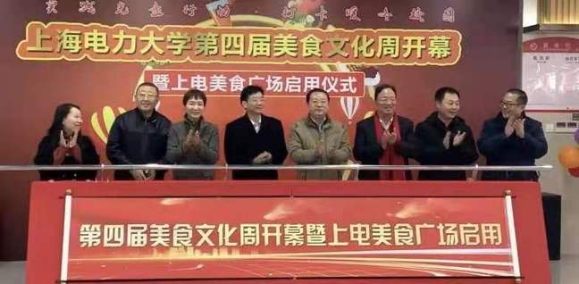 “五,四,三,二,一”,随着全场整齐的倒数声,上海市教委后勤保卫处处长张旭、上海电力大学副校长封金章、上海电力大学副校长黄冬梅、上海市后勤协会专职副秘书长董种德、上海市后勤协会餐饮管理专业委员会主任沈建平和兄弟高校的后勤部门负责人一起推动启动杆,标志着上电第四届美食文化周开幕暨上电美食广场正式启用。