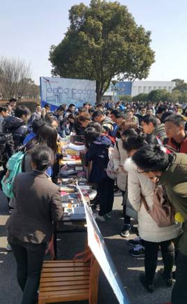其中考研书籍赠活动,广受学生欢迎,今年共推出了133册免费书籍,现场气氛异常热烈,领书现场排起了长长的队伍;多名同学写下了感谢信,表示这类的赠书活动正是她们所需要的。自行车修理点同样也备受欢迎,三名保安员在不当班的情况下从家里赶来,为师生修理自行车。