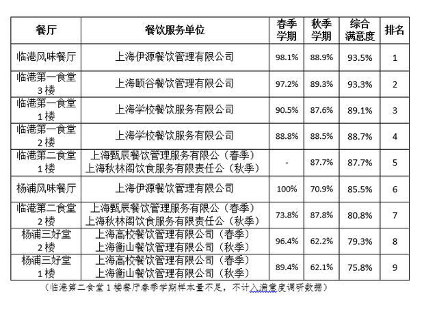 按照《上海电力大学外包餐饮服务管理办法(试行)》规定,后勤保障处每学期以线上匿名问卷的形式对学校食堂进行满意度调查,现公示2025年各餐厅满意度调查结果如下: