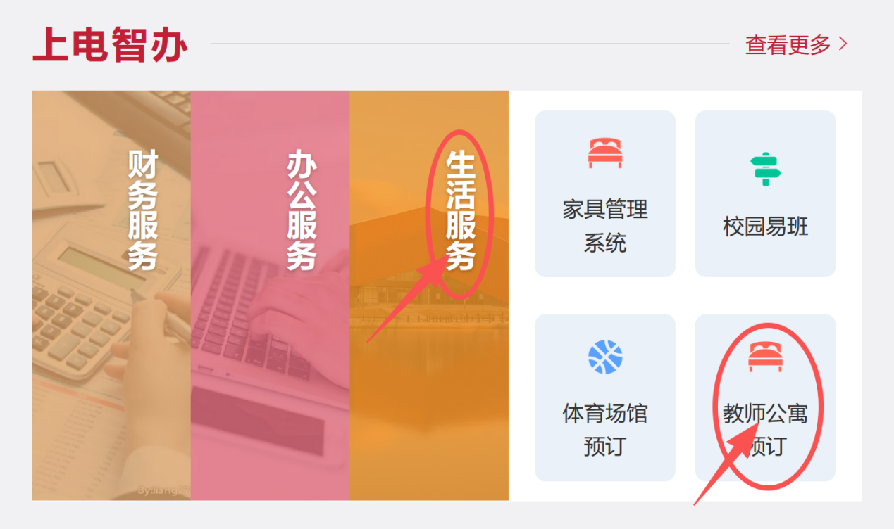 方式一:学校官网“一网通办”-生活服务-教师公寓预定