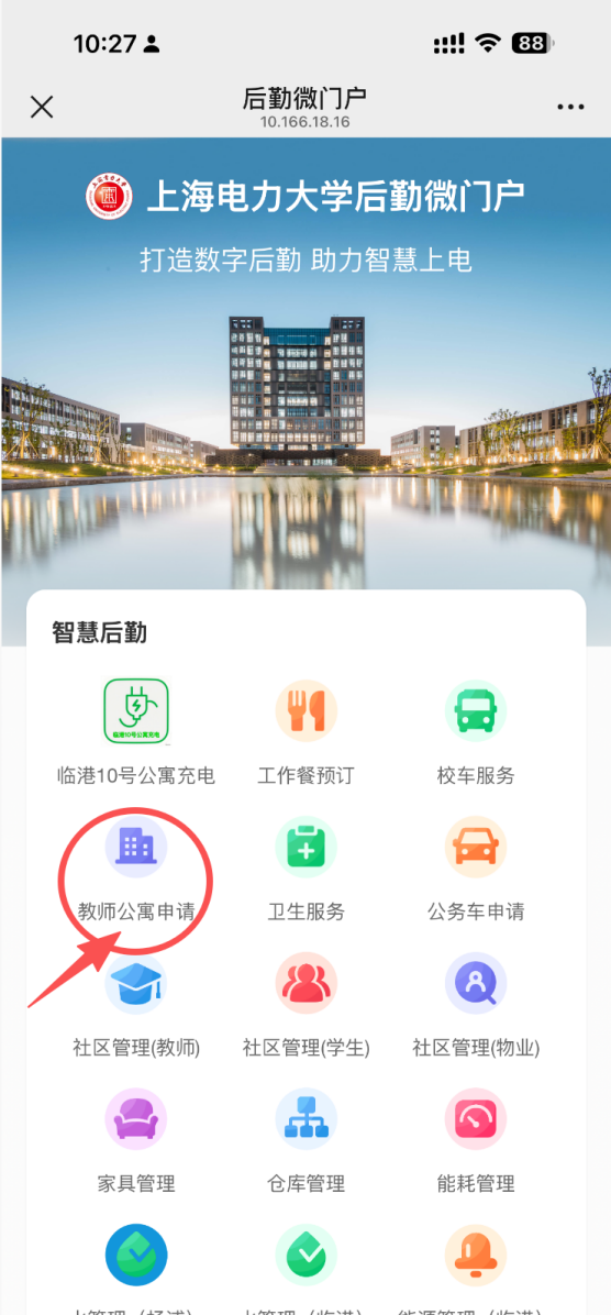 方式二:学校官方APP“E上电”-教师公寓预约申请